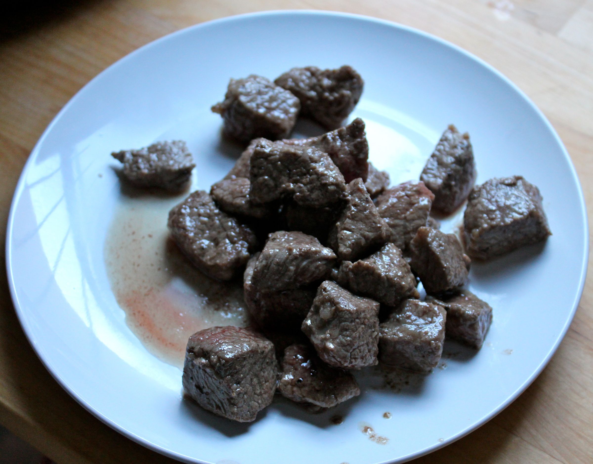 Slice your sirloin into thin strips (across the grain for tenderness) saute in 2 tablespoons of vegetable oil until most of the pink is gone.